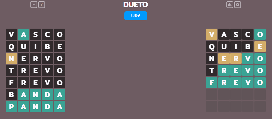 Vale ressaltar que todos jogam a mesma palavra, ou seja, caso você revele a palavra nas suas redes sociais, outras pessoas podem receber o spoiler dela. Abaixo você pode conferir a palavra de hoje do termo dueto.