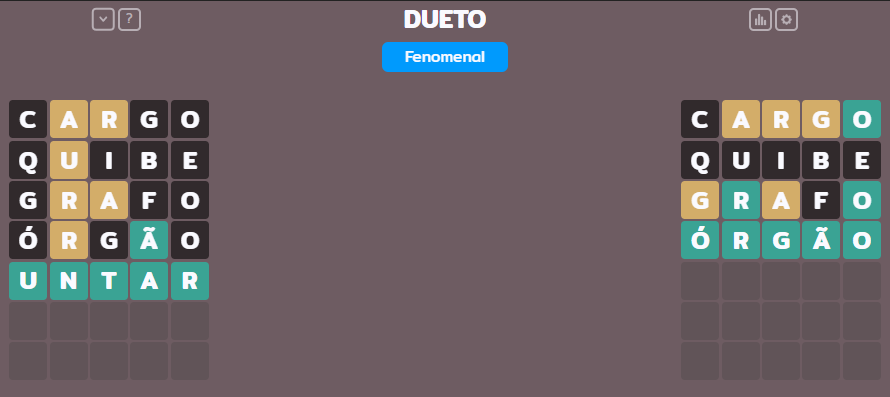 Vale ressaltar que todos jogam a mesma palavra, ou seja, caso você revele a palavra nas suas redes sociais, outras pessoas podem receber o spoiler dela. Abaixo você pode conferir a palavra de hoje do termo dueto.
