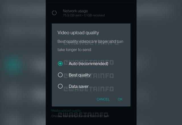 Uma versão futura do WhatsApp dará mais controle sobre a quantidade de compactação aplicada às imagens e vídeos enviados. WABetaInfo relata que os dois recursos estão atualmente em desenvolvimento para o aplicativo Android e, devem apresentar três opções ao enviar imagens e vídeos. As opções são “Automático“, “Melhor qualidade” ou “Economia de dados“.